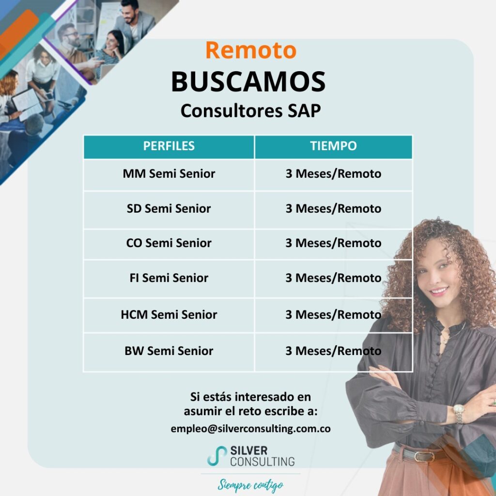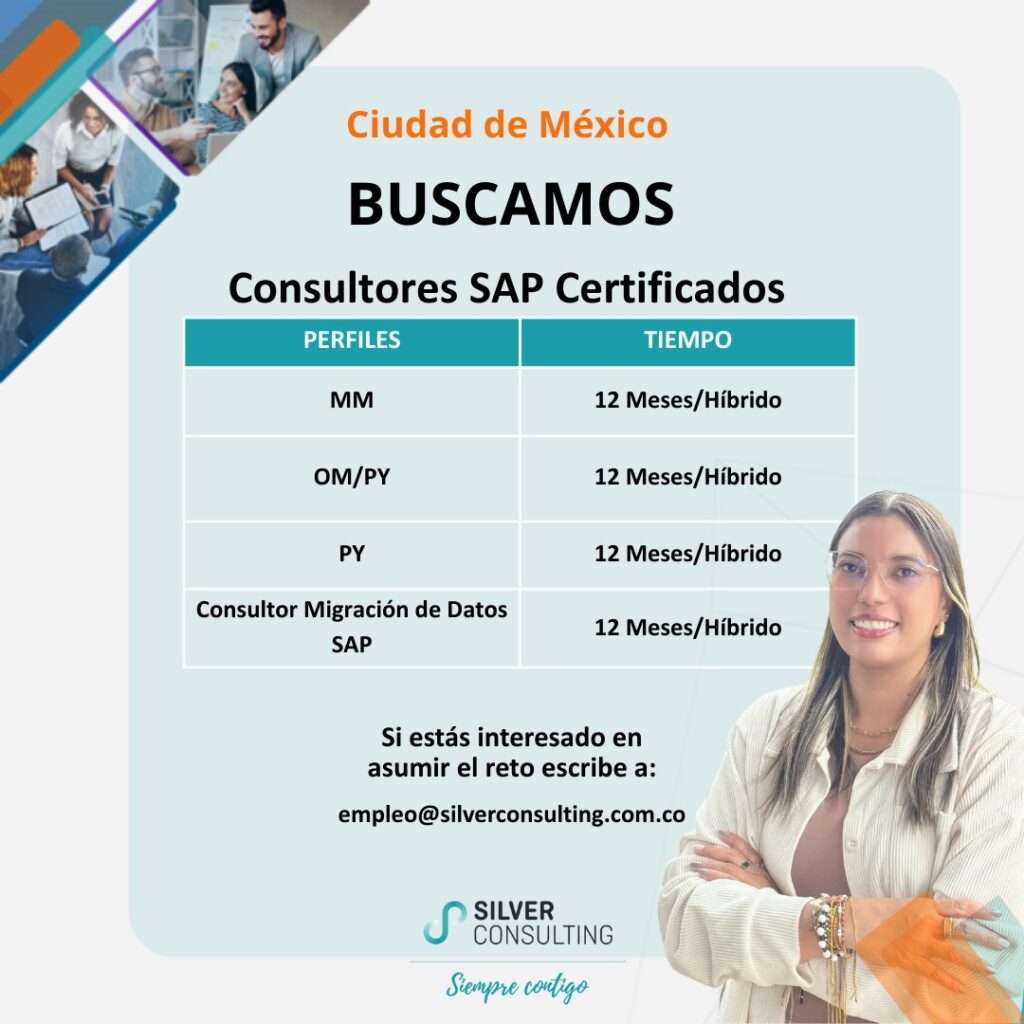 En Silver Consulting, buscamos profesionales apasionados por el desarrollo y consultoría en SAP. Los requisitos varían según la posición, pero valoramos experiencia en SAP ABAP y SAP SD, habilidades analíticas y un enfoque de trabajo en equipo.